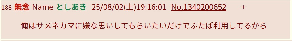 | … | 147無念Nameとしあき26/01/22(木)19:59:46No.1381969780そうだねx3>相手にもされてないのに金持ちのとしあきにこれだったしなあスレ豚 |