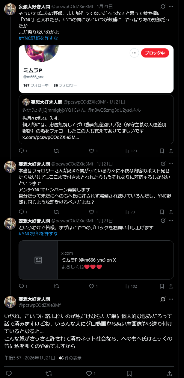 | … | 161無念Nameとしあき26/01/22(木)20:33:55No.1381979350そうだねx1負け豚デブのヤッチャイくんが発狂しながら立てたスレ |