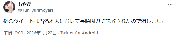 | … | 4無念Nameとしあき26/01/22(木)22:36:31No.1382012981そうだねx55<カバー株式会社 誹謗中傷通報専用窓口> |