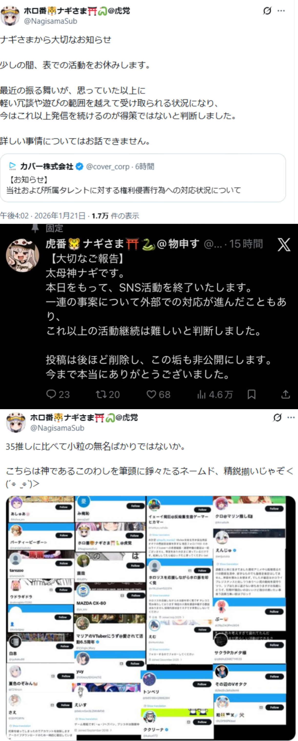 | … | 529無念Nameとしあき26/01/22(木)23:53:26No.1382031825+ 1769093606022.jpg-(498892 B) >>理不尽に凍結された3人 |