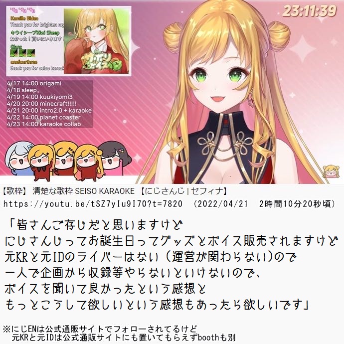 | … | 541無念Nameとしあき26/01/22(木)23:56:26No.1382032461そうだねx1>グッズとかも一切出さないので本人が細々boothとかで売ってたりするのがにじさんじ |