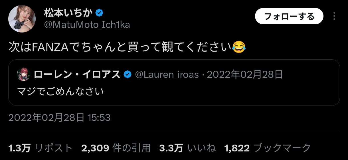 | … | 490無念Nameとしあき26/01/22(木)23:46:17No.1382030342+>もう遅いからみこちでシコってお眠りなさい✋😌 |