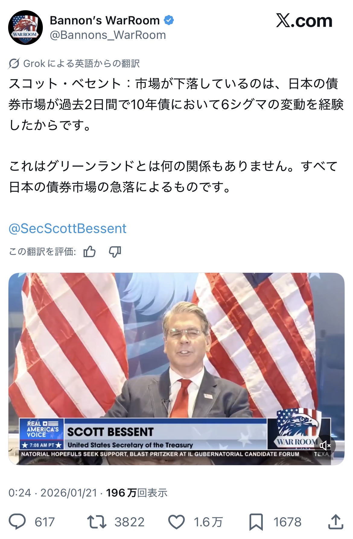 | … | 41無念Nameとしあき26/01/23(金)00:47:00No.1382041044そうだねx1〉アメリカ国債を売ってはならない!!!!! |