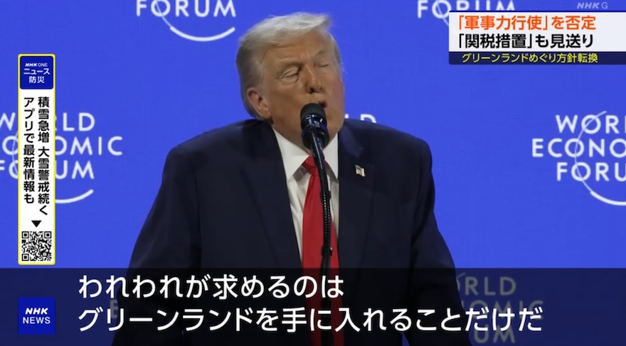 | … | 61無念Nameとしあき26/01/23(金)02:51:24No.1382052240+>流石のトランプもヨーロッパ各国がキレ始めたら日和ったか |