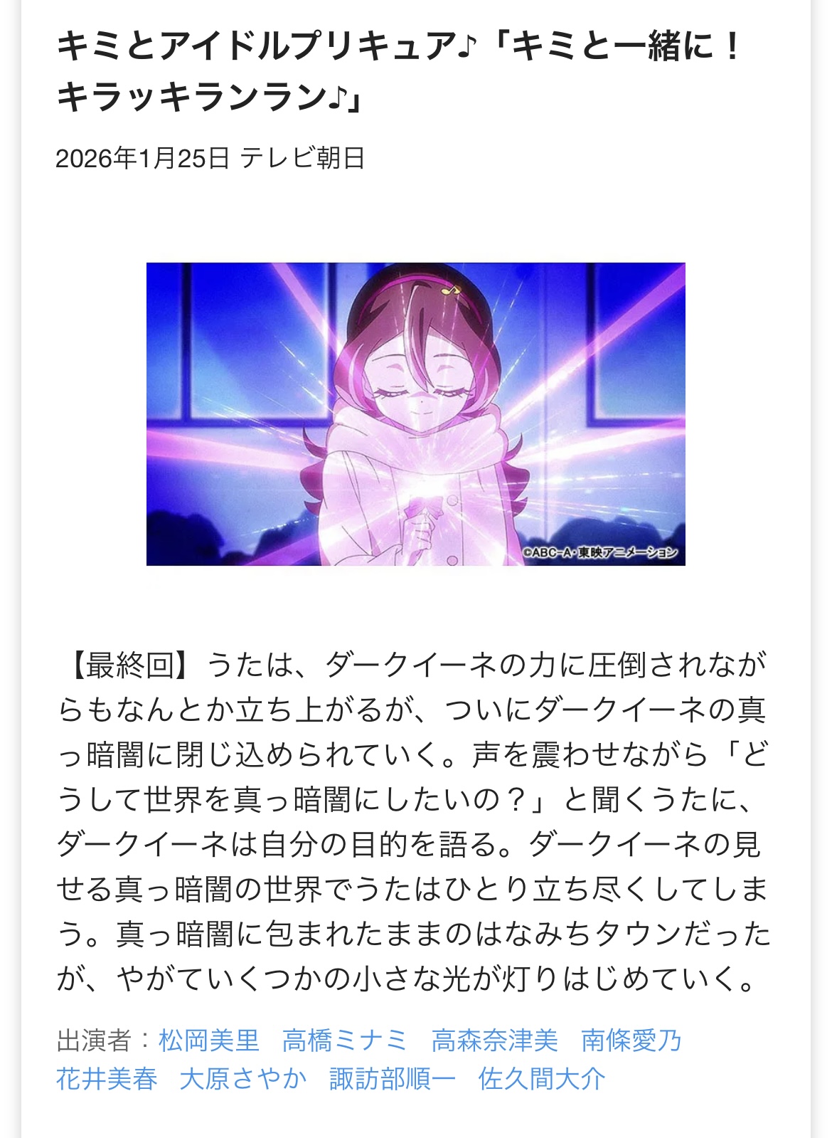 | … | 33無念Nameとしあき26/01/24(土)08:35:05No.1382286308+プリキュアのあらすじって下手するとアバンで消化されるから… |