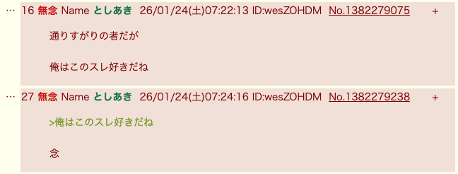 | … | 78無念Nameとしあき26/01/24(土)08:09:04No.1382283396そうだねx2>ID:wesZOHDM |