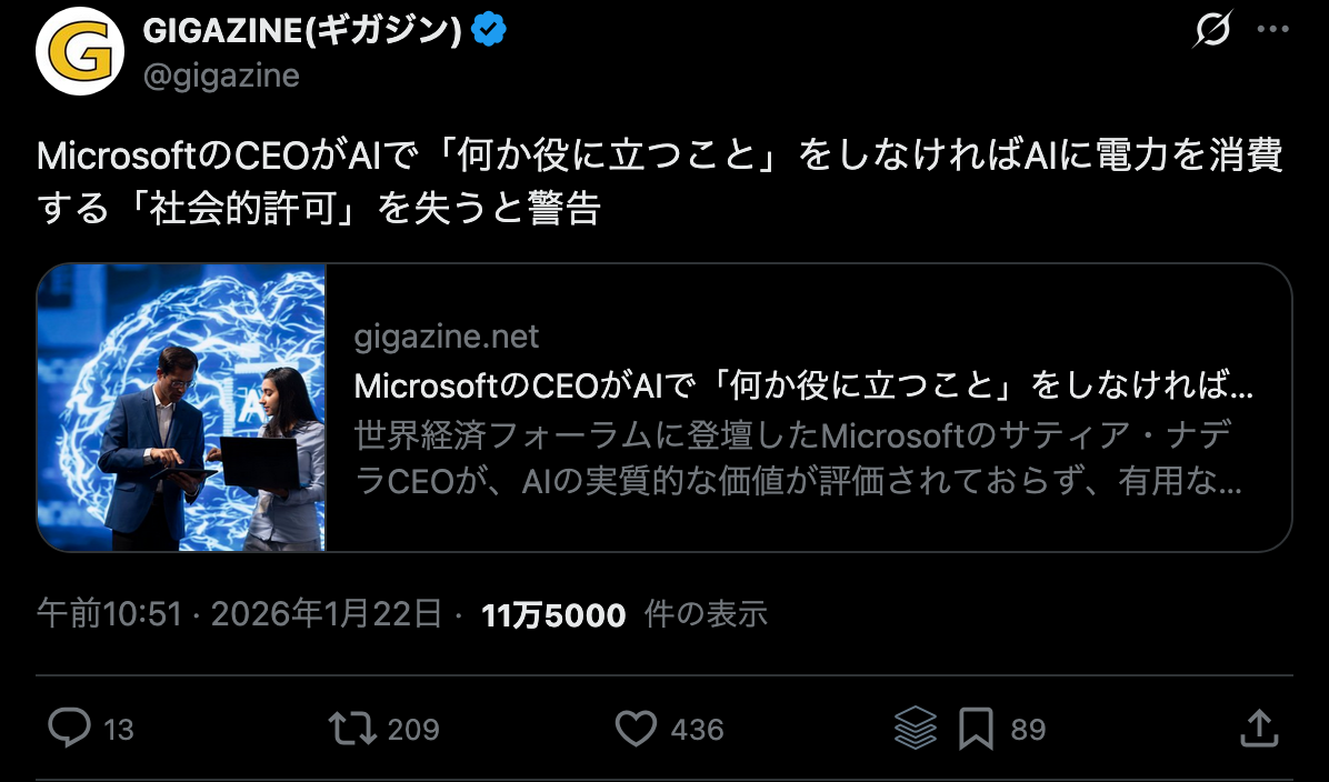 | … | 23無念Nameとしあき26/01/24(土)09:18:19No.1382292124+そういうのはAI産業でトップに立ってから言わないと⋯ |