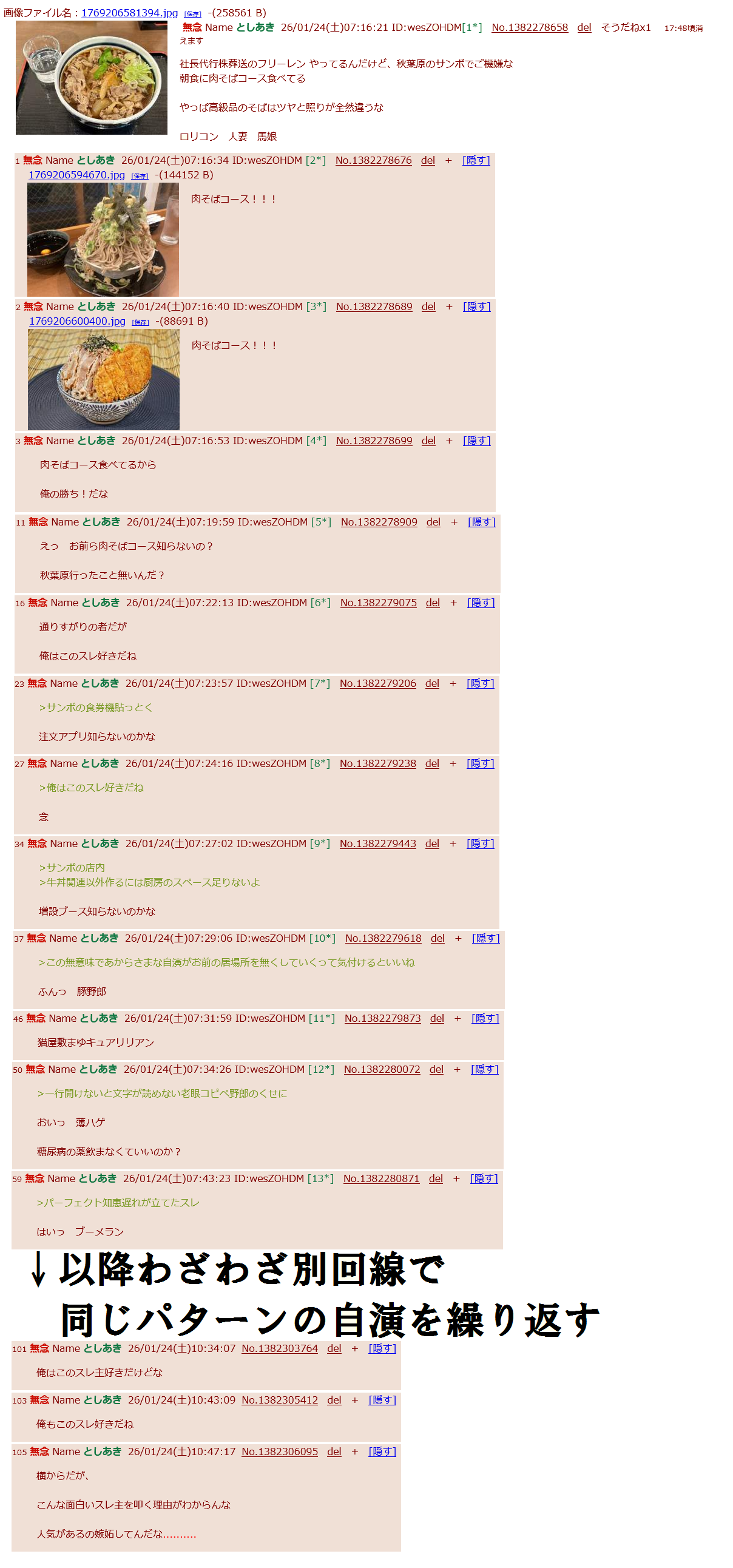 | … | 37無念Nameとしあき26/01/24(土)15:09:14No.1382355661そうだねx1>言っとくけど5分以内にレスなかったら糖質の負けだからね |