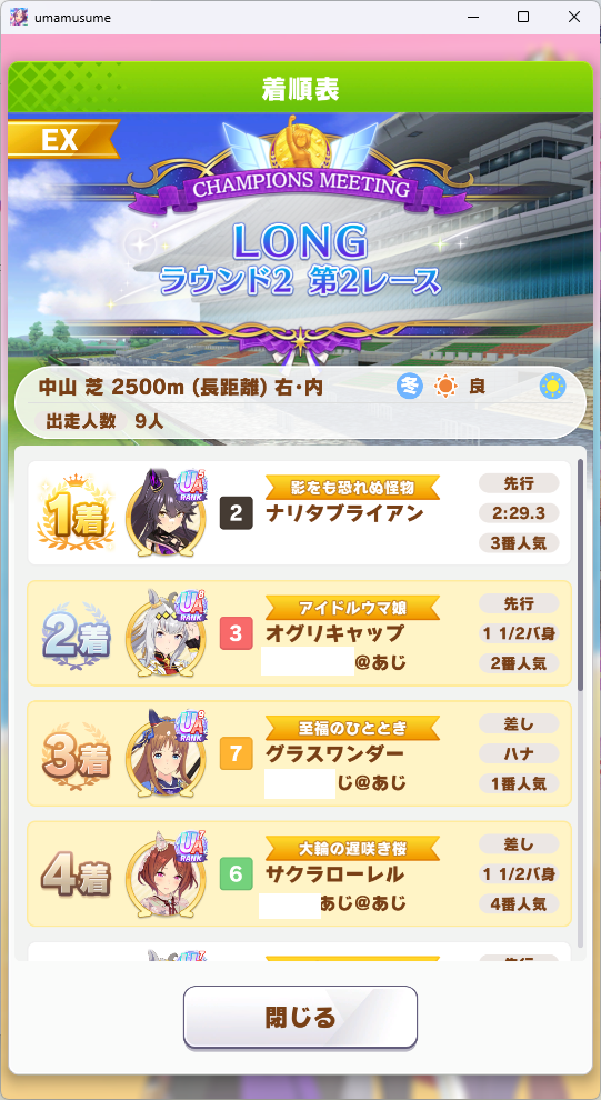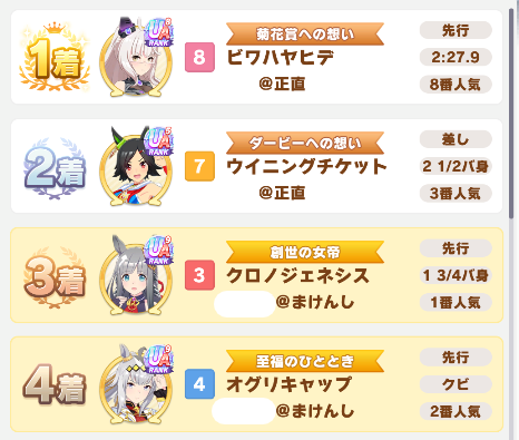 | … | 72無念Nameとしあき26/01/24(土)21:05:33 ID:rGXje5J6No.1382438686+R2のーまっちんでしたが3勝しましたわ |