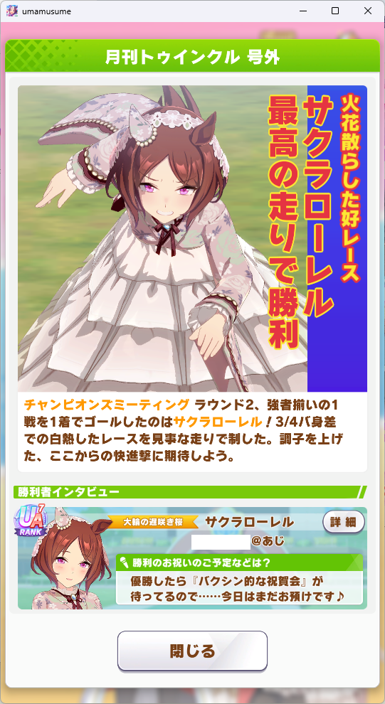 | … | 85無念Nameとしあき26/01/24(土)21:09:59 ID:e3VnisXUNo.1382439994+のーまっちんですが4勝でしたわ |
