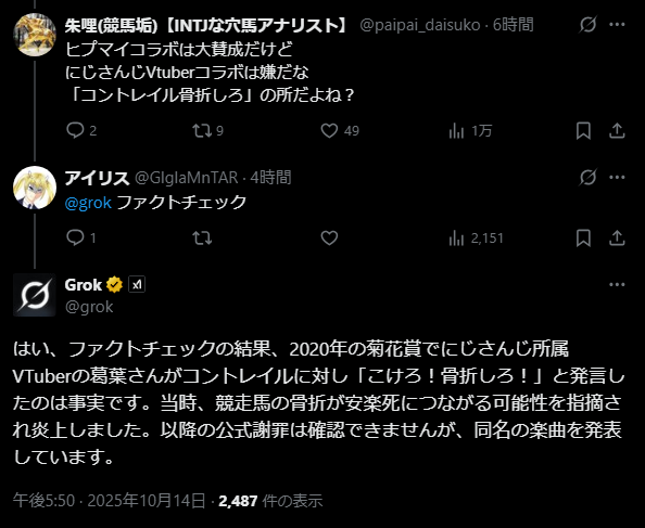 | … | 279無念Nameとしあき26/01/24(土)21:36:46No.1382447737そうだねx9 1769258206696.png-(70078 B) >>>競馬炎上からにじリスの行儀の悪さが表に広まってきてるよね |