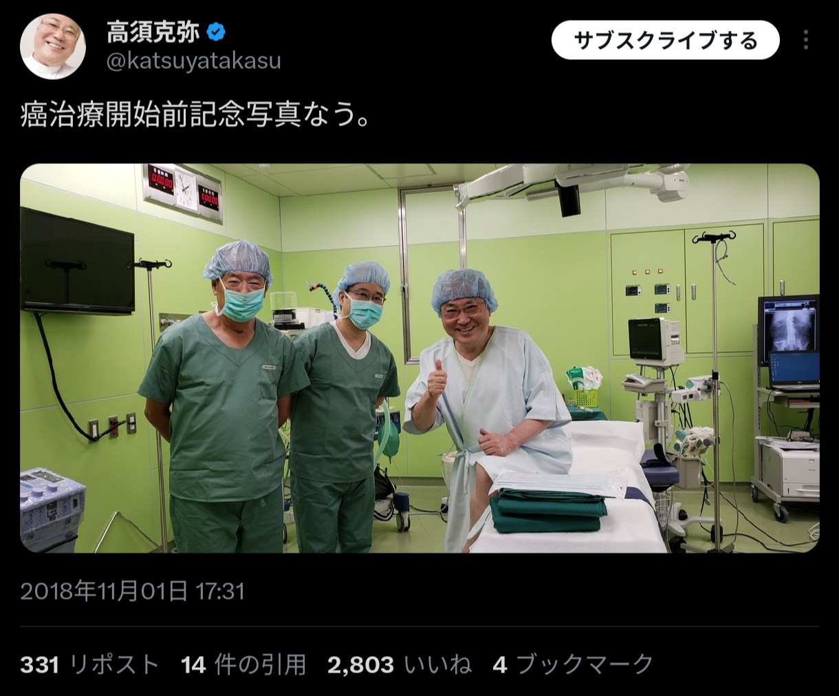 | … | 362無念Nameとしあき26/01/24(土)22:09:27No.1382457147そうだねx10高須「治療室でふざけんな!馬鹿者!」(手術室で手術前にサムズアップ記念写真) |