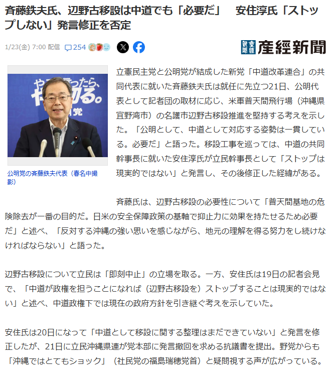 | … | 44無念Nameとしあき26/01/24(土)20:46:16No.1382433033+>立憲に比べたら公明ってめちゃめちゃ右寄りだなってわかる |