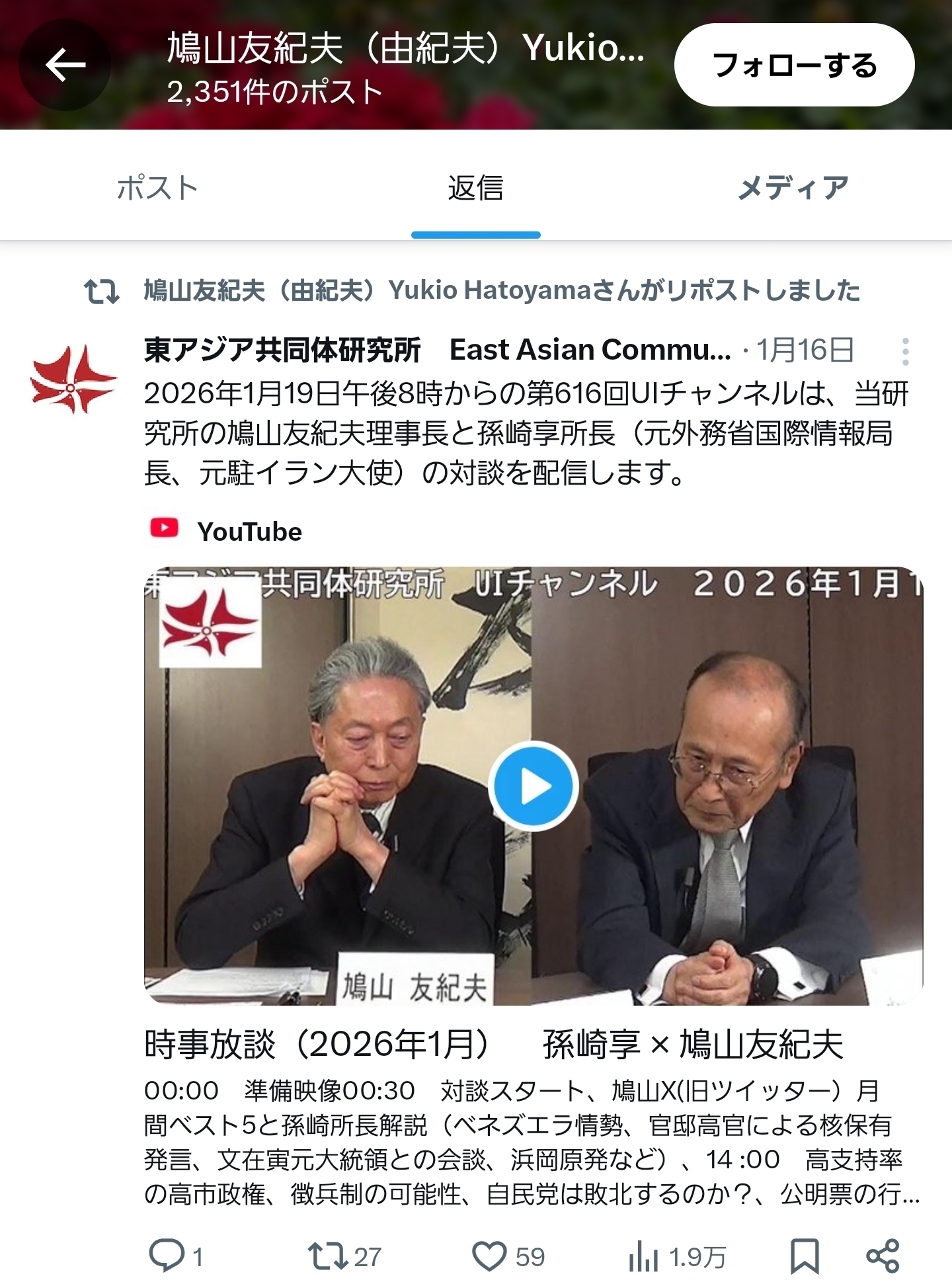 | … | 19無念Nameとしあき26/01/24(土)20:33:06No.1382429222そうだねx11youtubeのチャンネルでも明確なことほどんど言わなかったな |