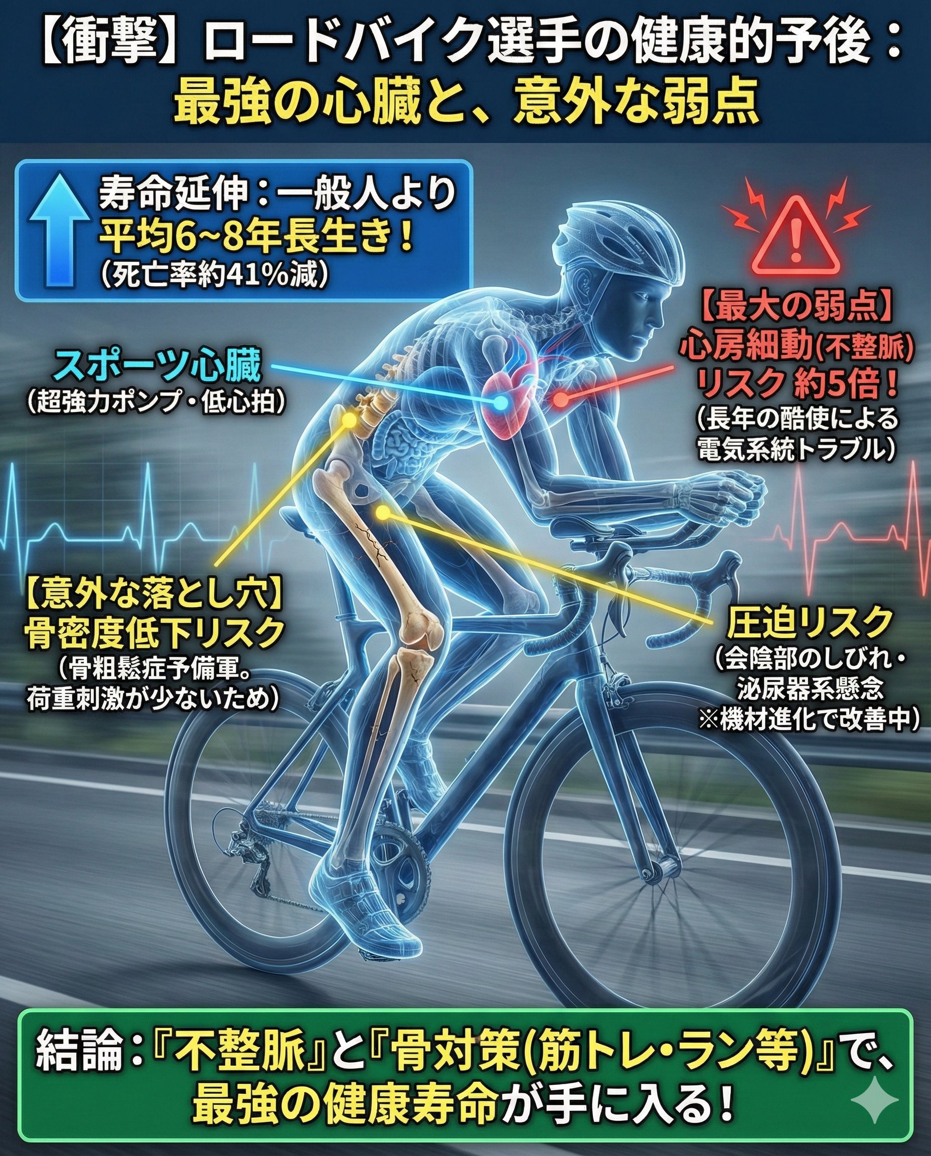 | … | 34無念Nameとしあき26/01/25(日)06:06:04No.1382518367+俺も自転車競技やってるけど毎回心電図で徐脈だのQT延長だの言われるよ |