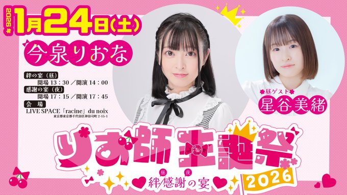 | … | 49無念Nameとしあき26/01/25(日)09:59:50No.1382546977そうだねx1 1769302790313.jpg-(77856 B) >>祝え!明日はりおなのお誕生日わよ! |