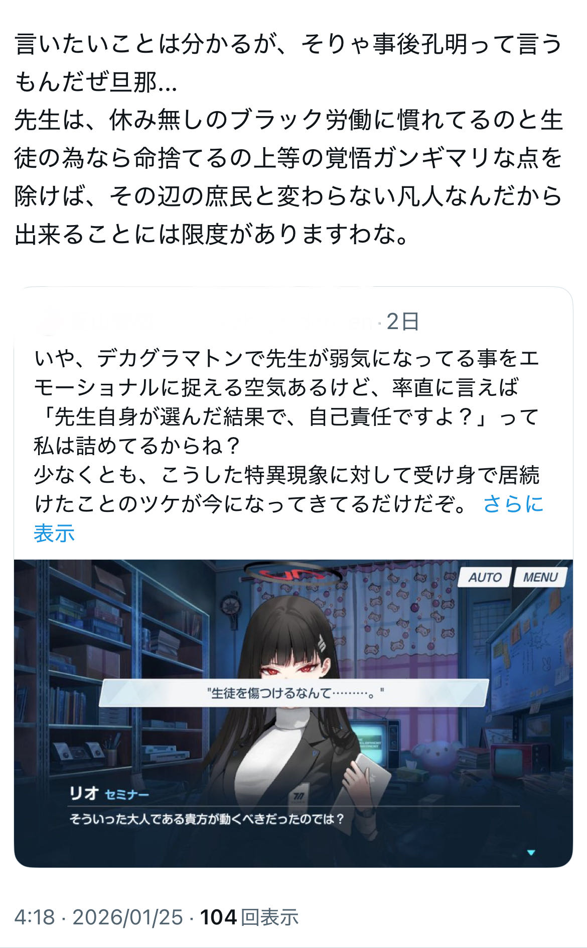 | … | 22無念Nameとしあき26/01/25(日)09:47:46No.1382544094そうだねx29 1769302066312.jpg-(29218 B) >「みんなでブルーアーカイブのいいところを探そう! |