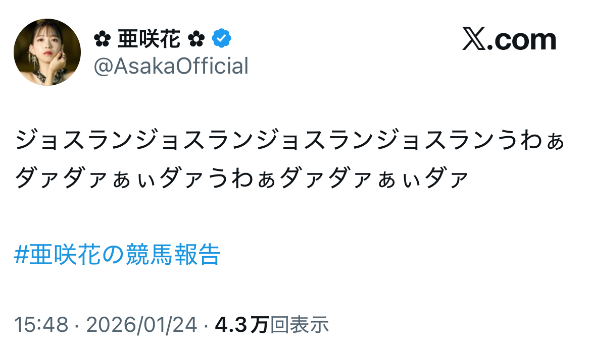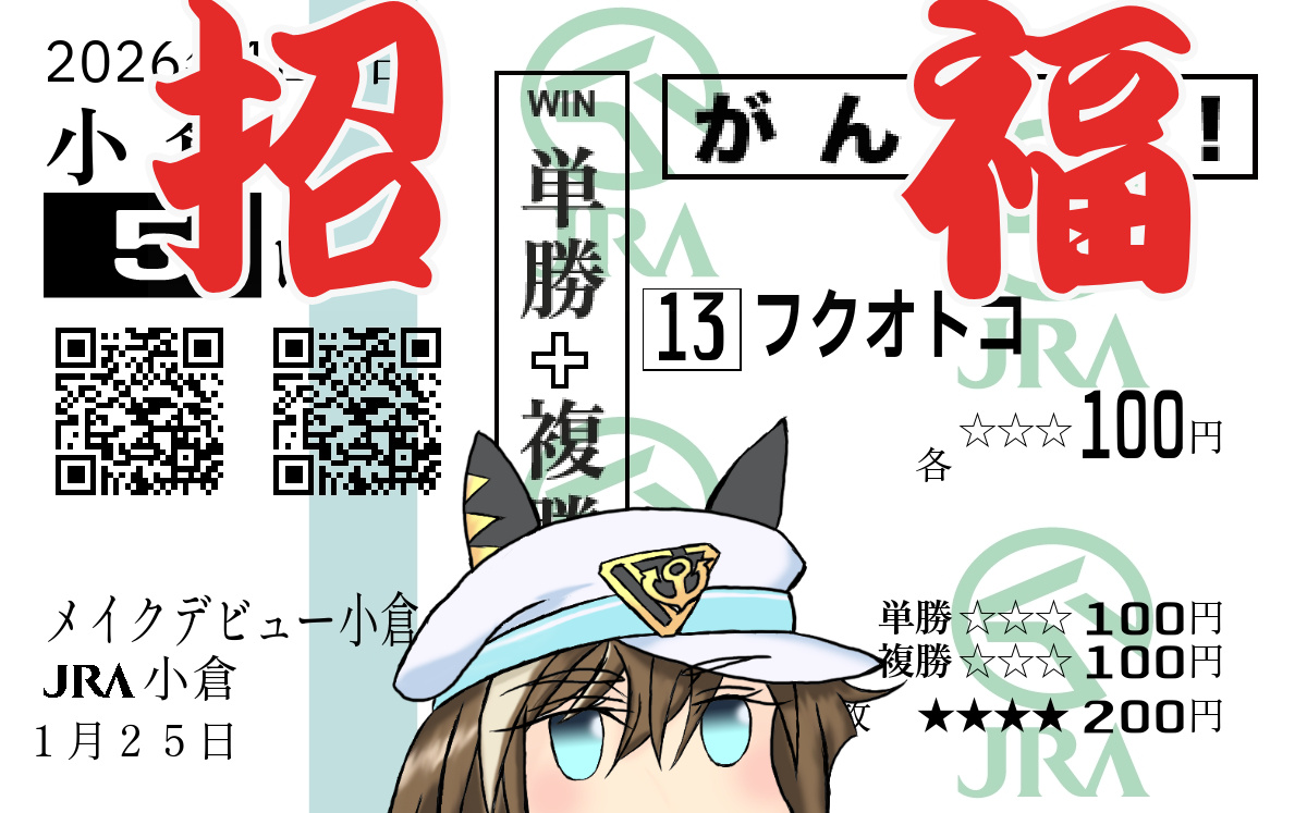 | … | 685無念Nameとしあき26/01/25(日)13:15:35No.1382589414+>誘導馬のポストカードセットも入手できたし馬券もぼちぼちだったので小倉競馬場撤収します |