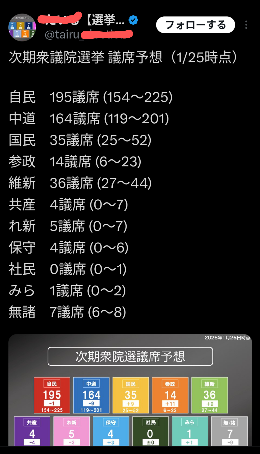 | … | 996無念Nameとしあき26/01/25(日)22:29:49No.1382732830そうだねx1いやぁ本当に楽しみな選挙になりそうですね |