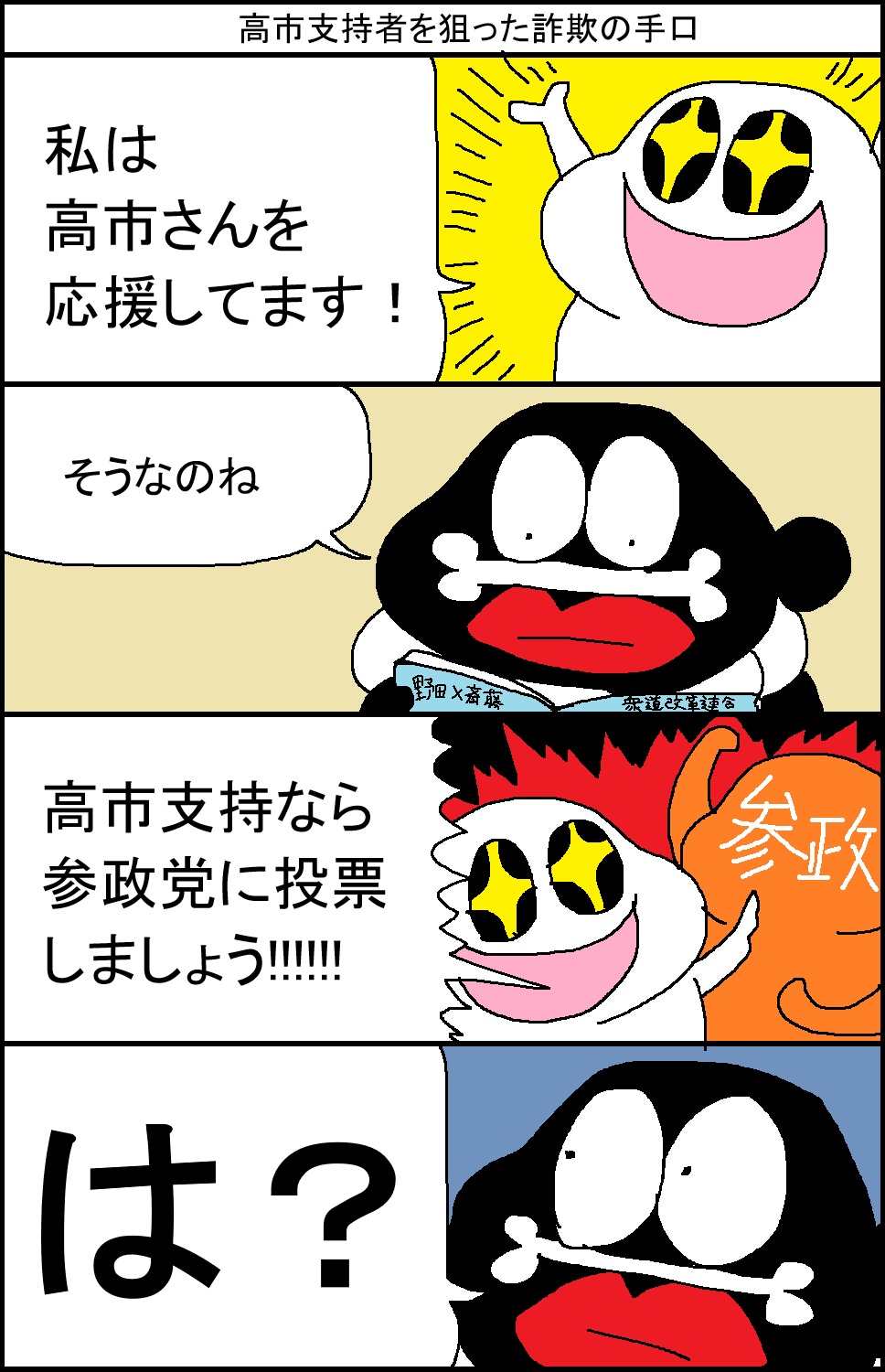 | … | 908無念Nameとしあき26/01/25(日)22:18:19No.1382729618+>選挙が終わったら融合解除すればいいんじゃない |