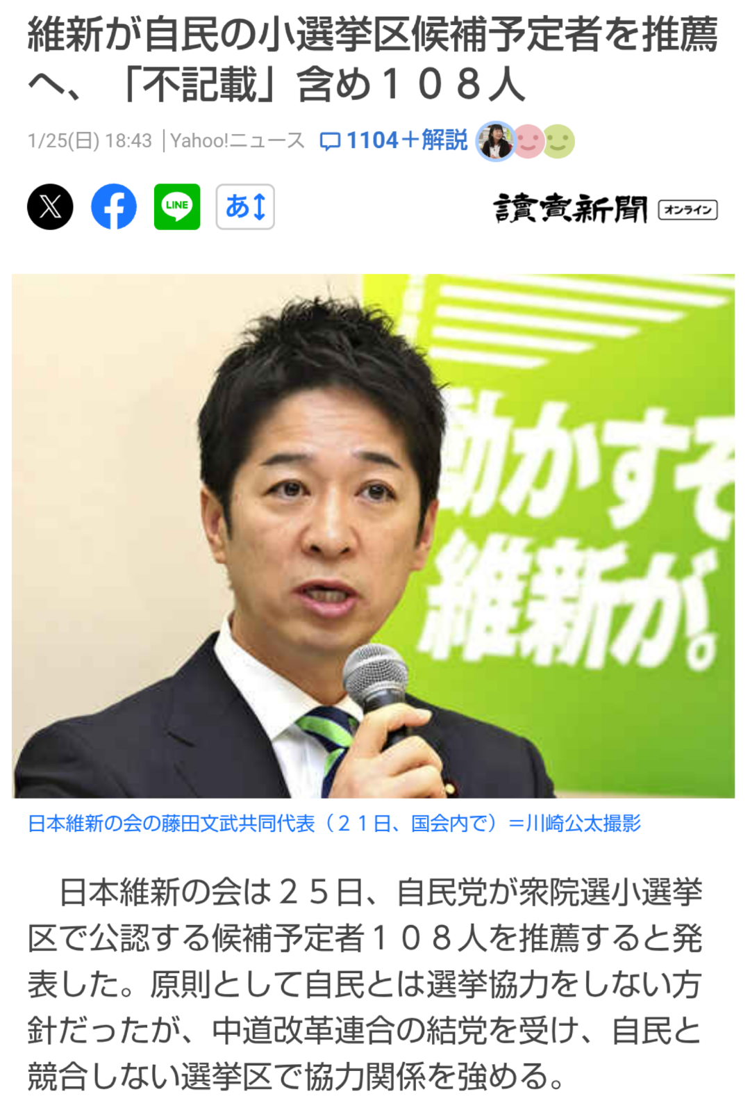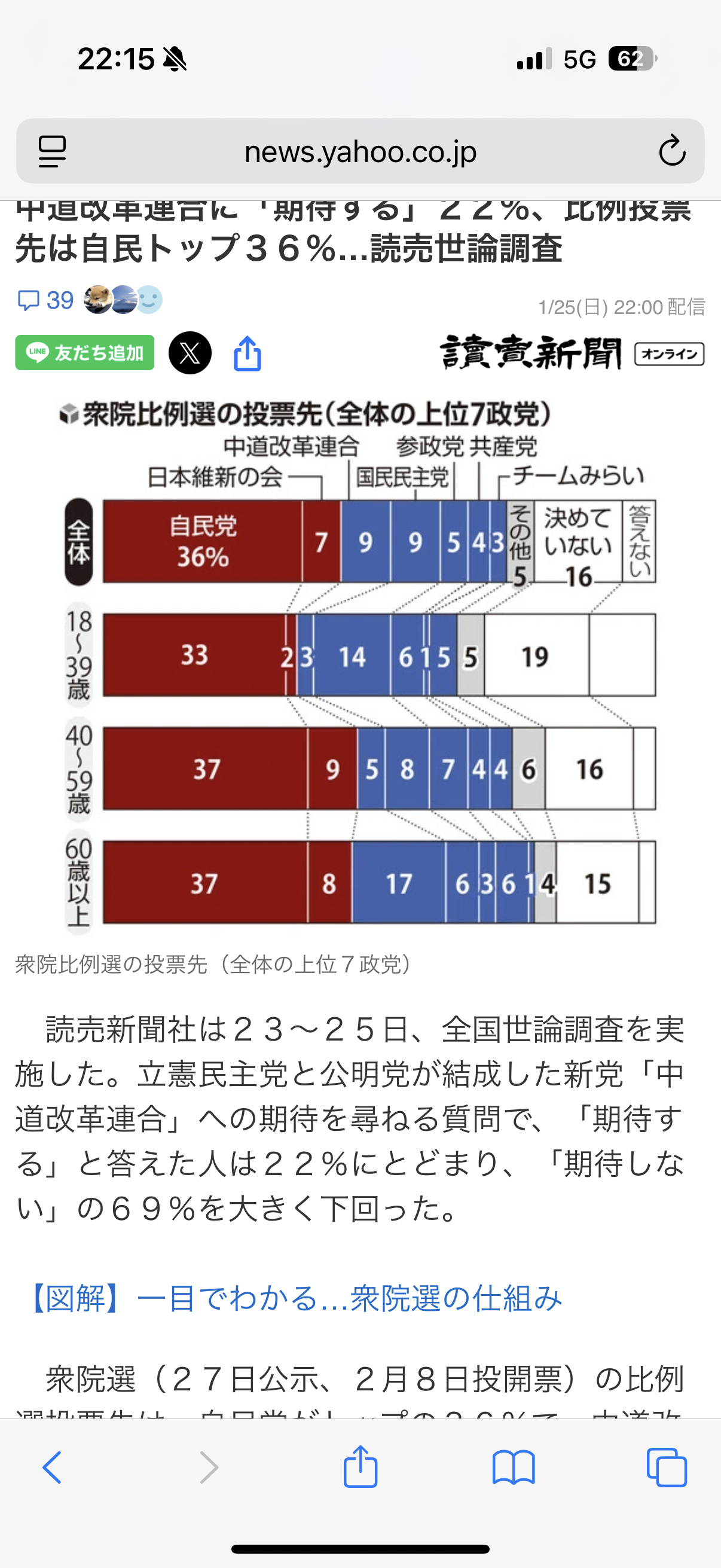 | … | 962無念Nameとしあき26/01/25(日)22:24:19No.1382731316+中道改革連合に「期待する」22%、比例投票先は自民トップ36%…読売世論調査 |