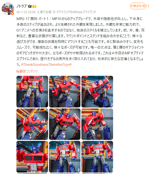 | … | 36無念Nameとしあき26/01/26(月)00:00:34No.1382754341そうだねx1>今までのコンボイやオプティマスプライムの意匠やエッセンスを各部に取り入れ、あらゆる世代や地域のトランスフォーマーファンに受け入れて貰えるようなスタイリッシュなプロポーションを追求 |
