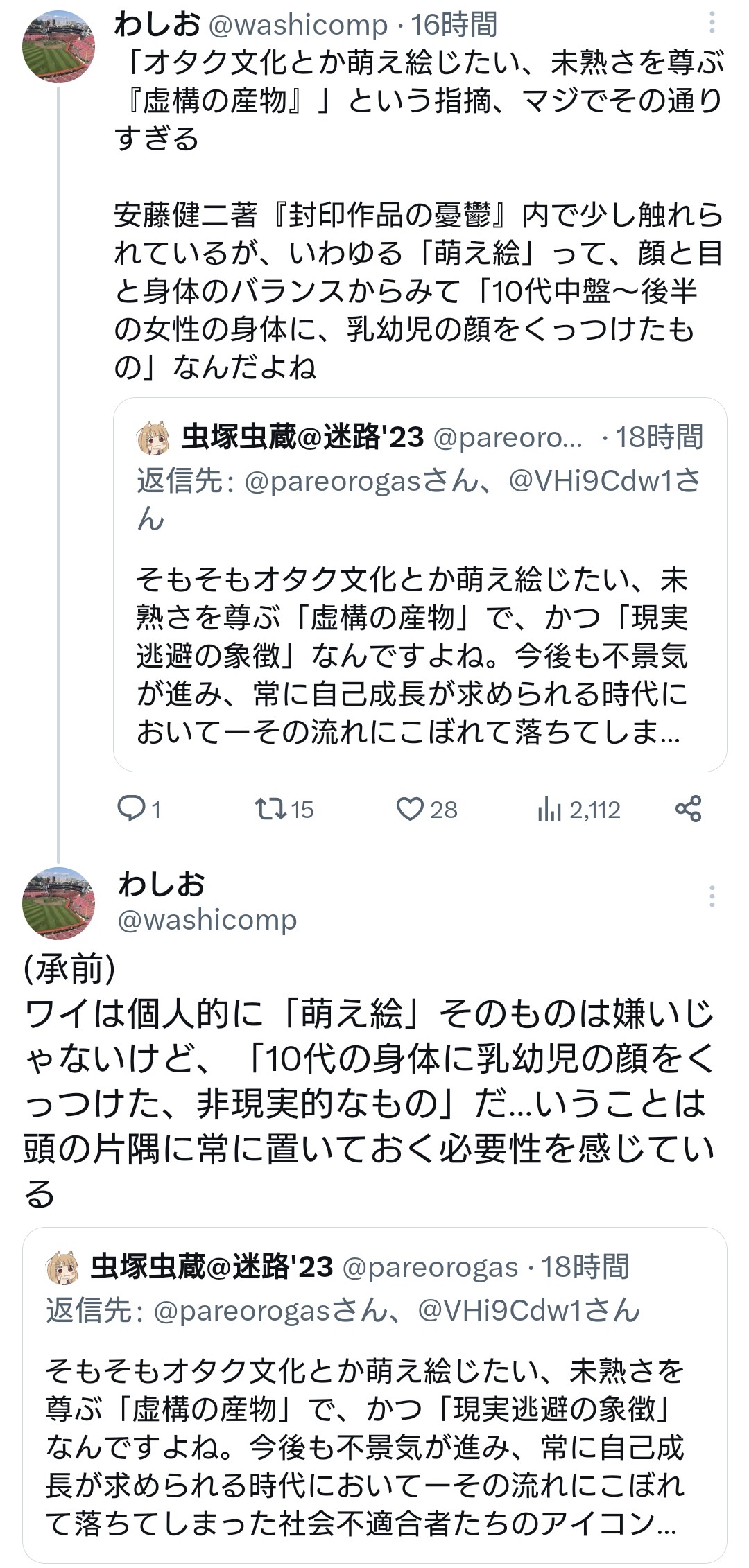 | … | 27無念Nameとしあき26/01/26(月)07:18:34No.1382783540そうだねx2>あんなテンプレみたいな萌え絵貼り付けて喋るなんて日本人はロリコンばかりだと海外から白い目で見られてるんだぞ |