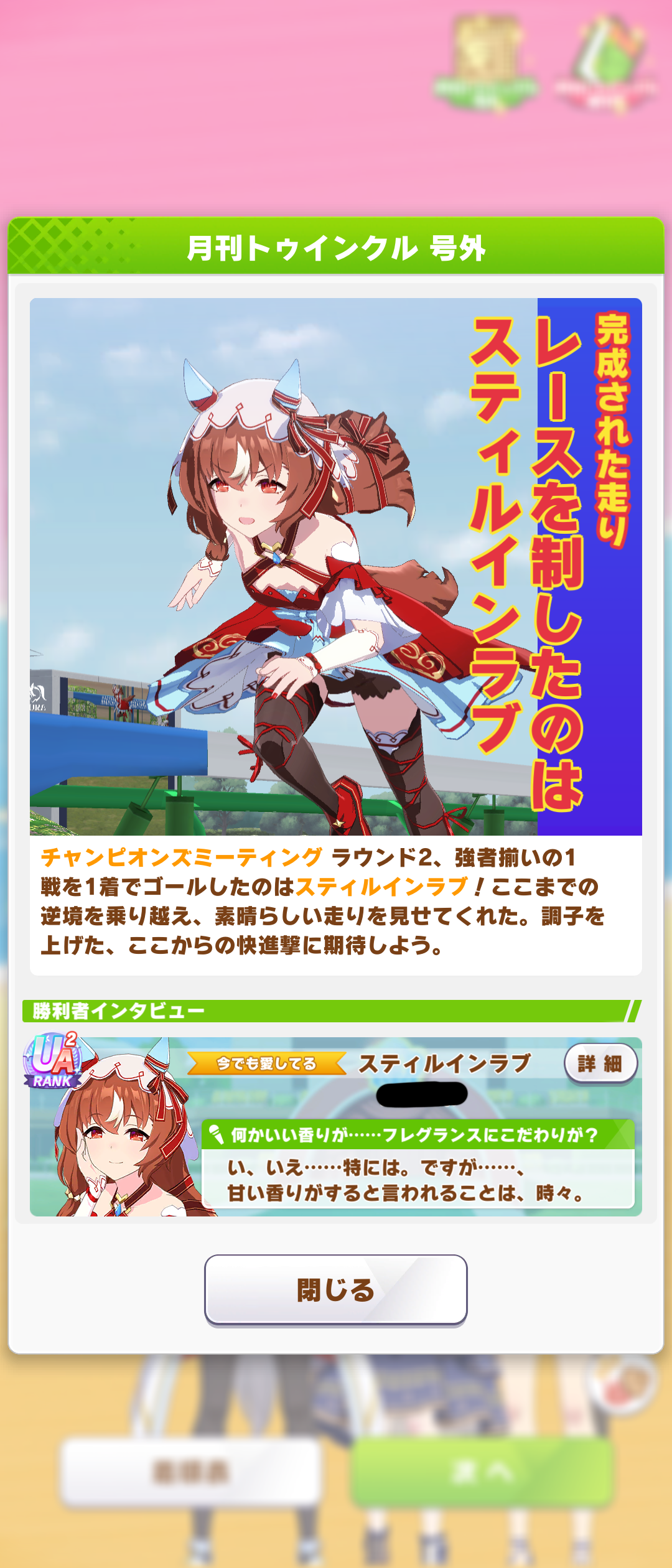 | … | 961無念Nameとしあき26/01/26(月)12:38:01No.1382819699+>もうこれウインディちゃんをチャンミで走らせるのってウララ走らせるのと難易度ほぼ同じじゃないか? |
