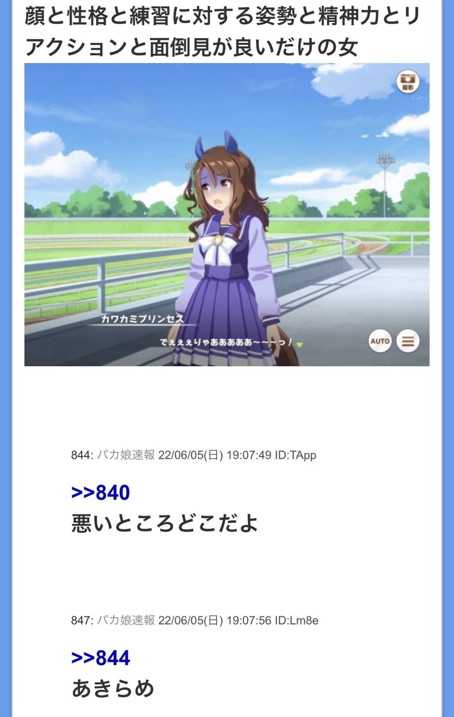 ウマ娘スレ上限1000レスに達しました