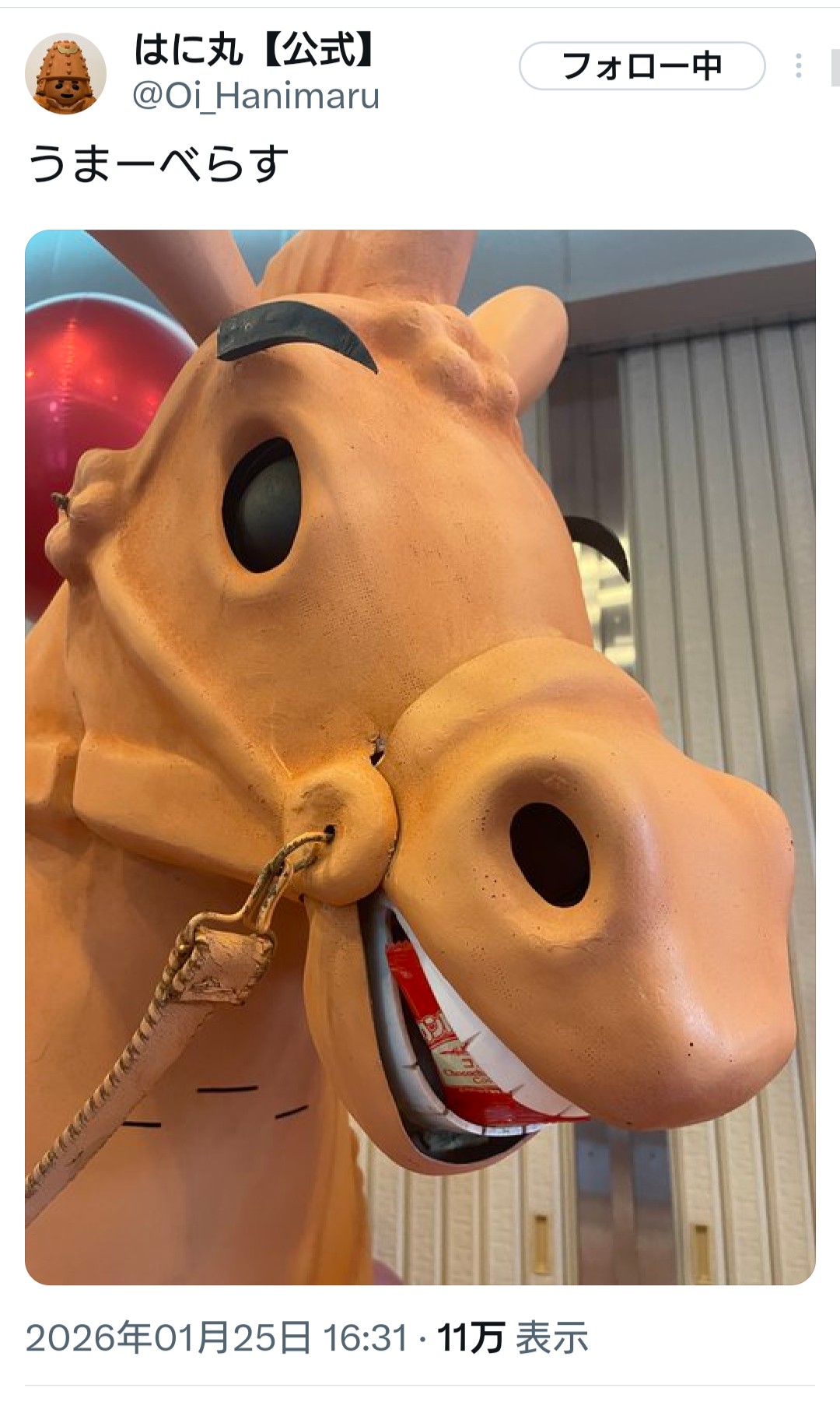 | … | 28無念Nameとしあき26/01/26(月)00:56:43No.1382763791そうだねx1たまに晴れ着ウララちゃんは見かけるので異常者はちゃんといる |