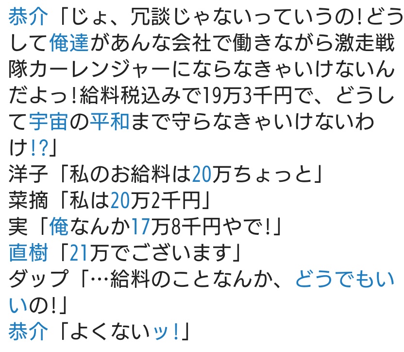 | … | 22無念Nameとしあき26/01/26(月)02:04:06No.1382771394そうだねx1ヒーローやってるけど俺らあくまで一般人なんだぞアピールしてたからこそじゃあ力ない一般市民にもヒーローの心はあるって逆転の発想の繋がる心はカーレンジャーって展開がいいんだよな |