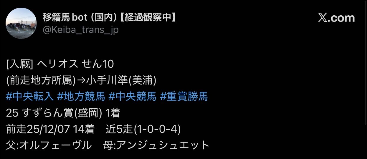 | … | 33無念Nameとしあき26/01/26(月)13:04:44No.1382824589+デビュー前に馴致失敗ってところか… |
