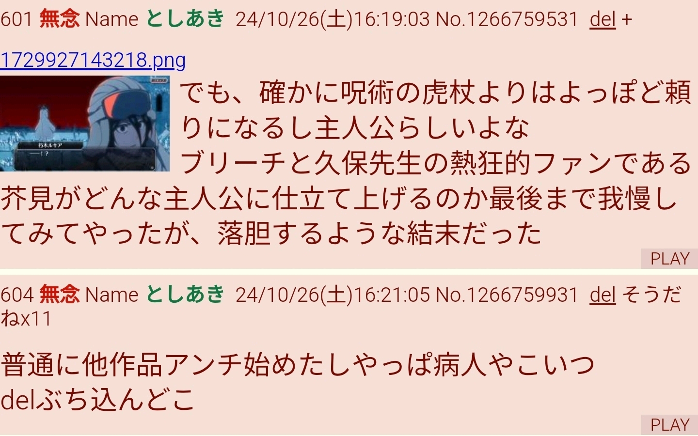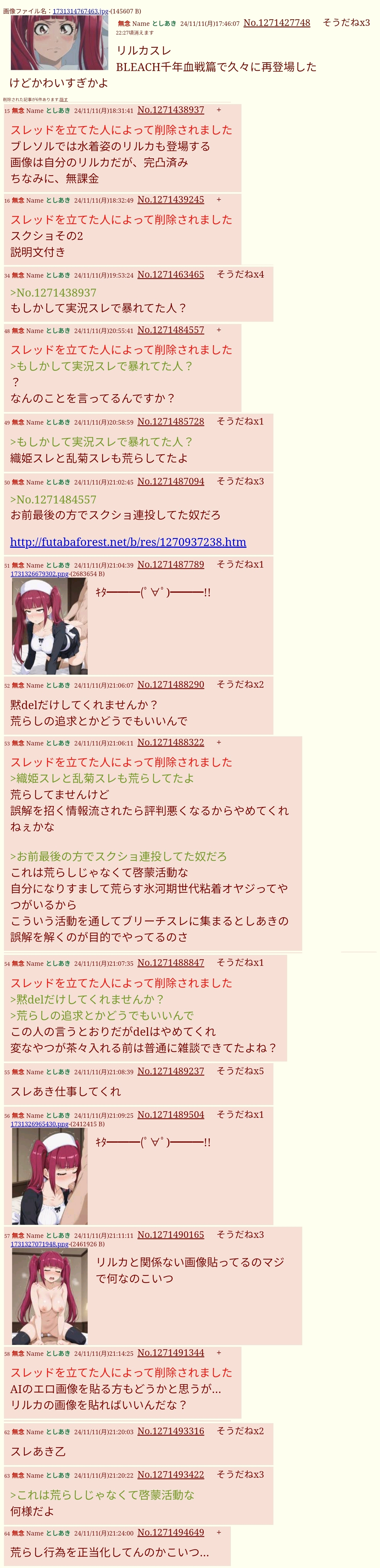 | … | 40無念Nameとしあき26/01/26(月)18:20:57No.1382871712そうだねx4 1769419257058.png-(964722 B) ルキアでオナニーをしました! |