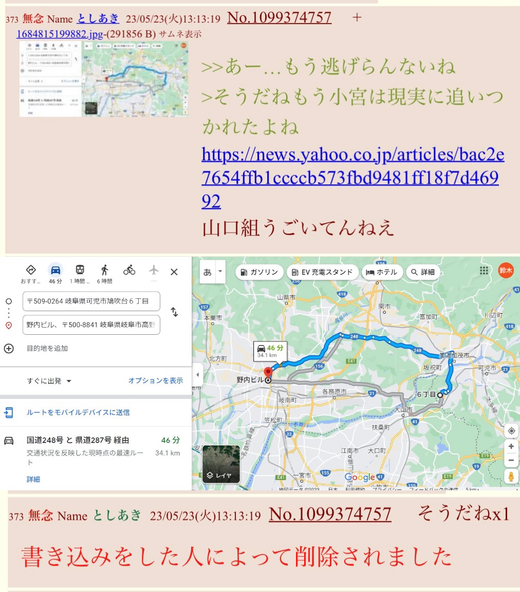 | … | 50無念Nameとしあき26/01/26(月)19:34:41No.1382888223そうだねx1 1769423681276.png-(1061384 B) 山口組→小宮宅ではなく小宮→山口組事務所に凸だったのは笑った |