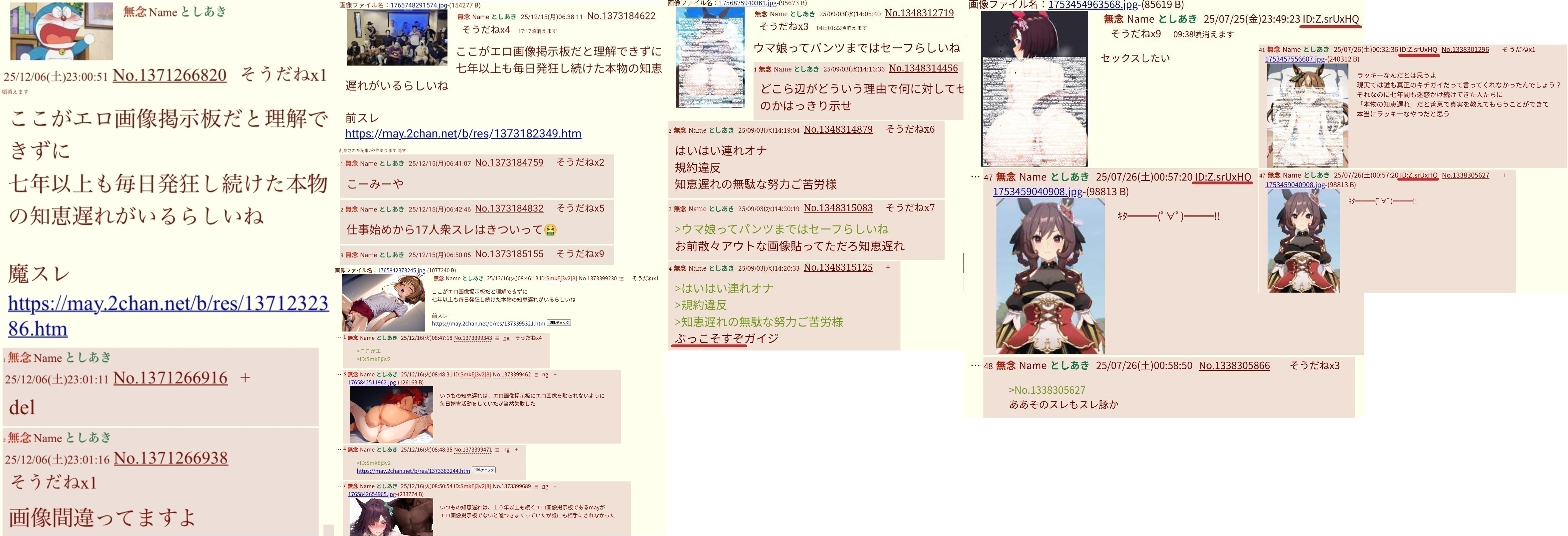 | … | 290無念Nameとしあき26/01/26(月)22:30:22No.1382935271+毎日こんなことしてるウマ娘のアンチは完全に心の病気だよ |
