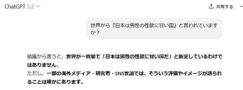 「世界から『日本は男性の性欲に甘い国』と言われていることを恥じるべき」