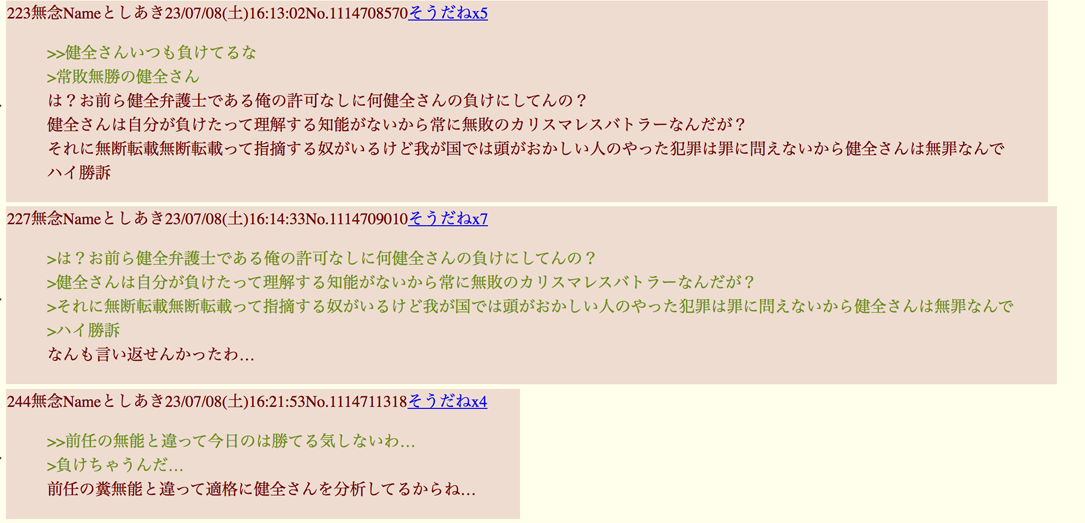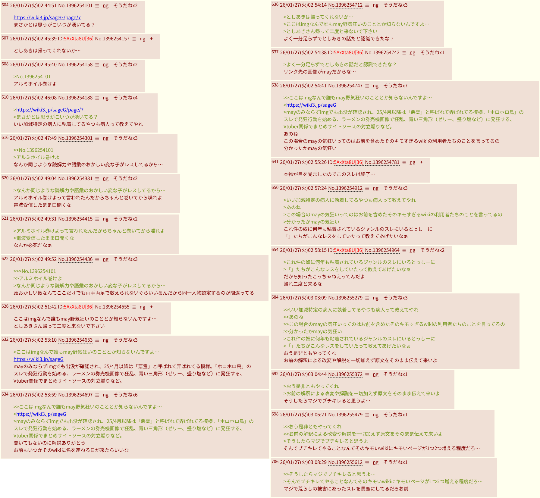 | … | 291無念Nameとしあき26/01/27(火)07:27:04No.1382983173そうだねx6で?他所のスレでsage爺とか言ってる奴ら話通じない糖質!淫夢厨は糖質!ってやんの? |