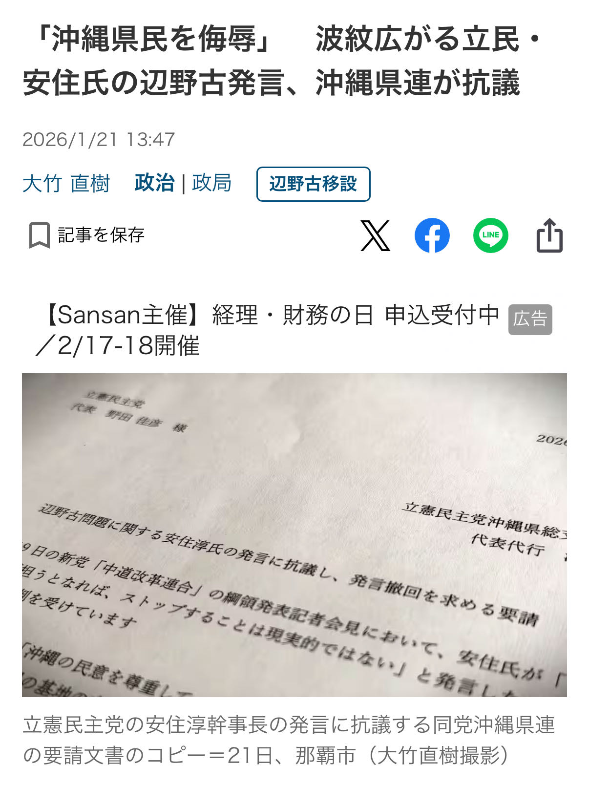 | … | 107無念Nameとしあき26/01/27(火)04:00:54No.1382976185そうだねx5 1769454054123.jpg-(55831 B) 共同通信の見出しまるで暗号だな |