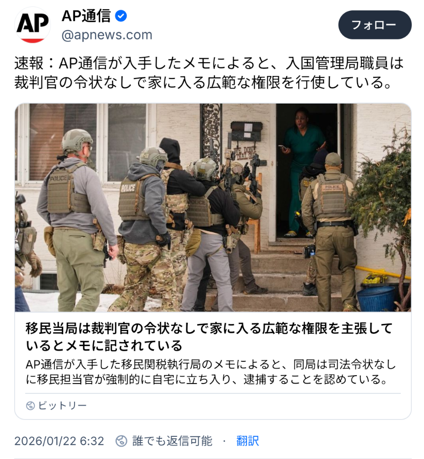 | … | 97無念Nameとしあき26/01/27(火)09:28:45No.1382995016+ICEってどこまでの特権持ってるんだ? |