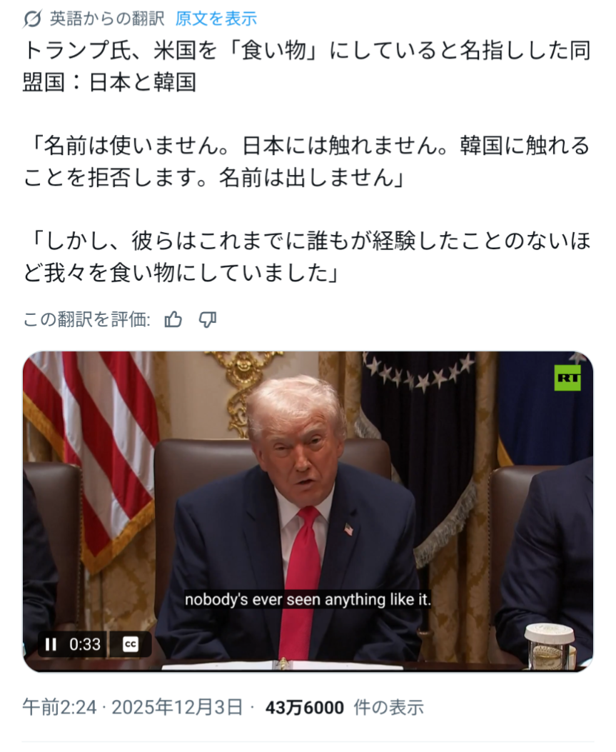 | … | 318無念Nameとしあき26/01/27(火)10:29:18No.1383002130+>>ちなみに公式文書でトランプが日本の消費税に言及したことは一度も無いよ |