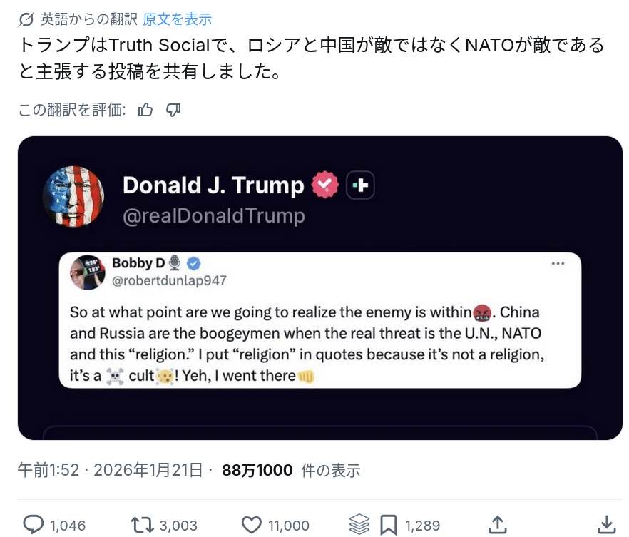 | … | 69無念Nameとしあき26/01/27(火)09:18:42No.1382993948そうだねx5 1769473122101.webp-(19084 B) >アフガン絡みでNATO馬鹿にしまくったら |