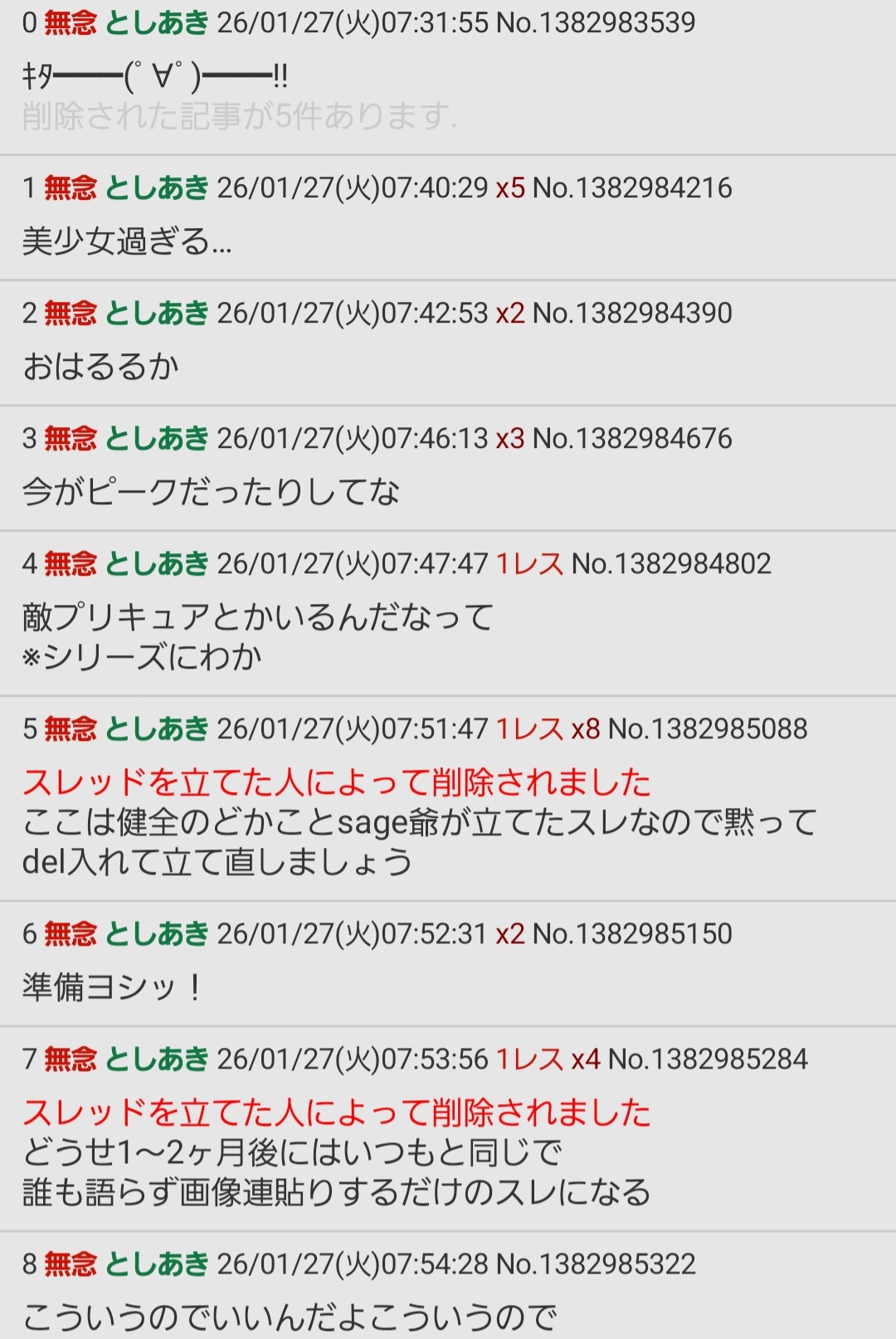 | … | 5無念Nameとしあき26/01/27(火)08:53:01No.1382991330+スレッドを立てた人によって削除されました |