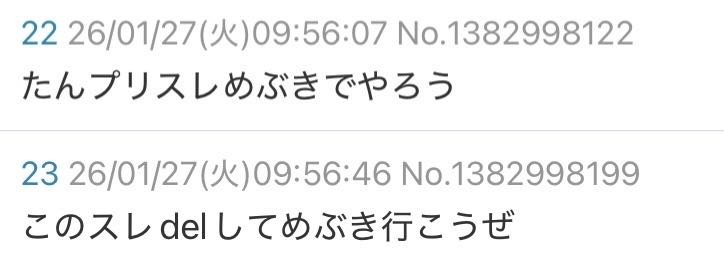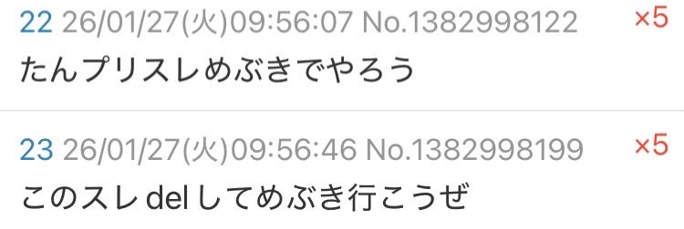 | … | 24無念Nameとしあき26/01/27(火)10:00:41No.1382998653そうだねx2>まぁめぶきで楽しくやってるプリあきがいるのは良かったですね |