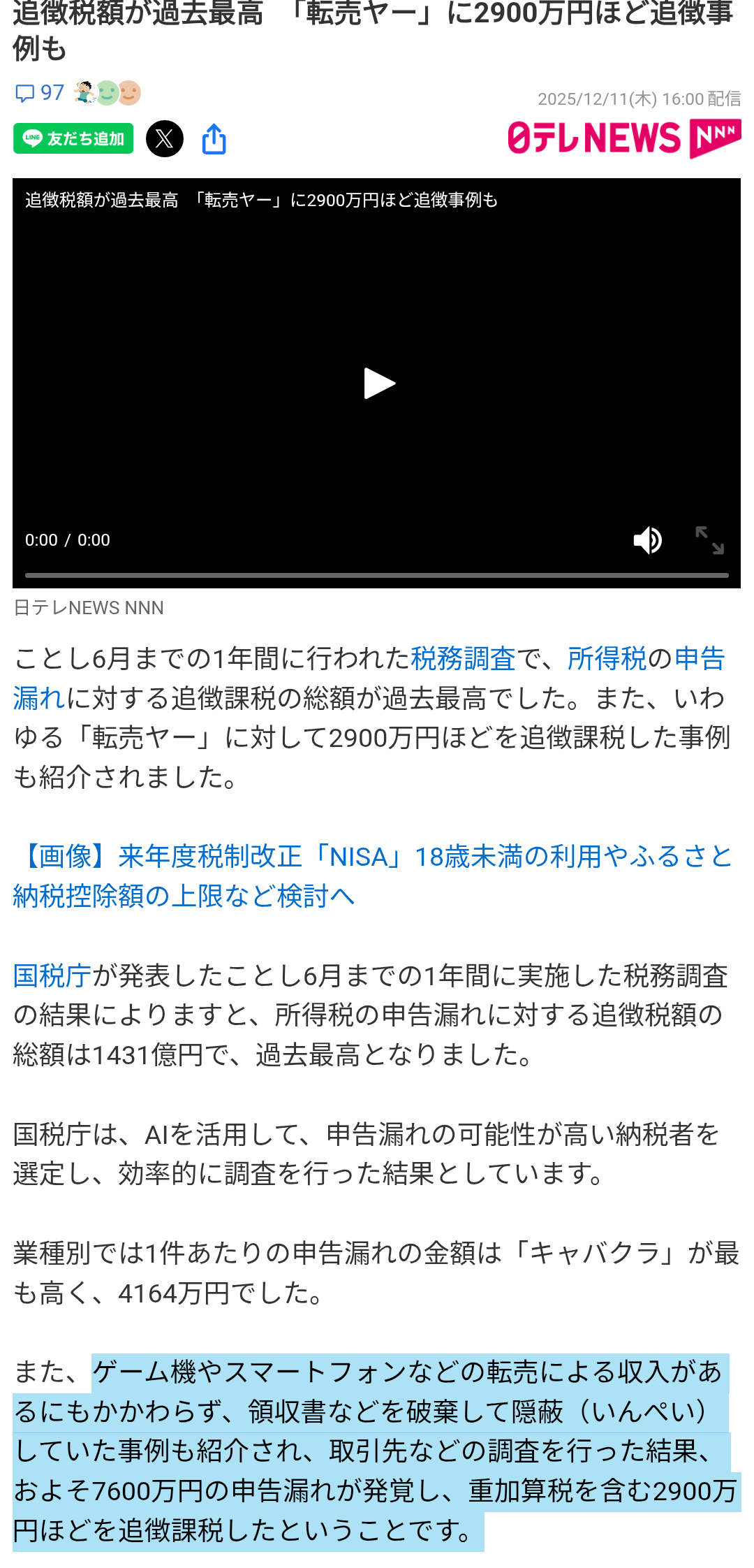 | … | 45無念Nameとしあき26/01/27(火)09:36:10No.1382995856+>まぁやってねえどころか積極的に所得隠しとかしてるから国税に睨まれて重加算税まで剥がされるんだけども |