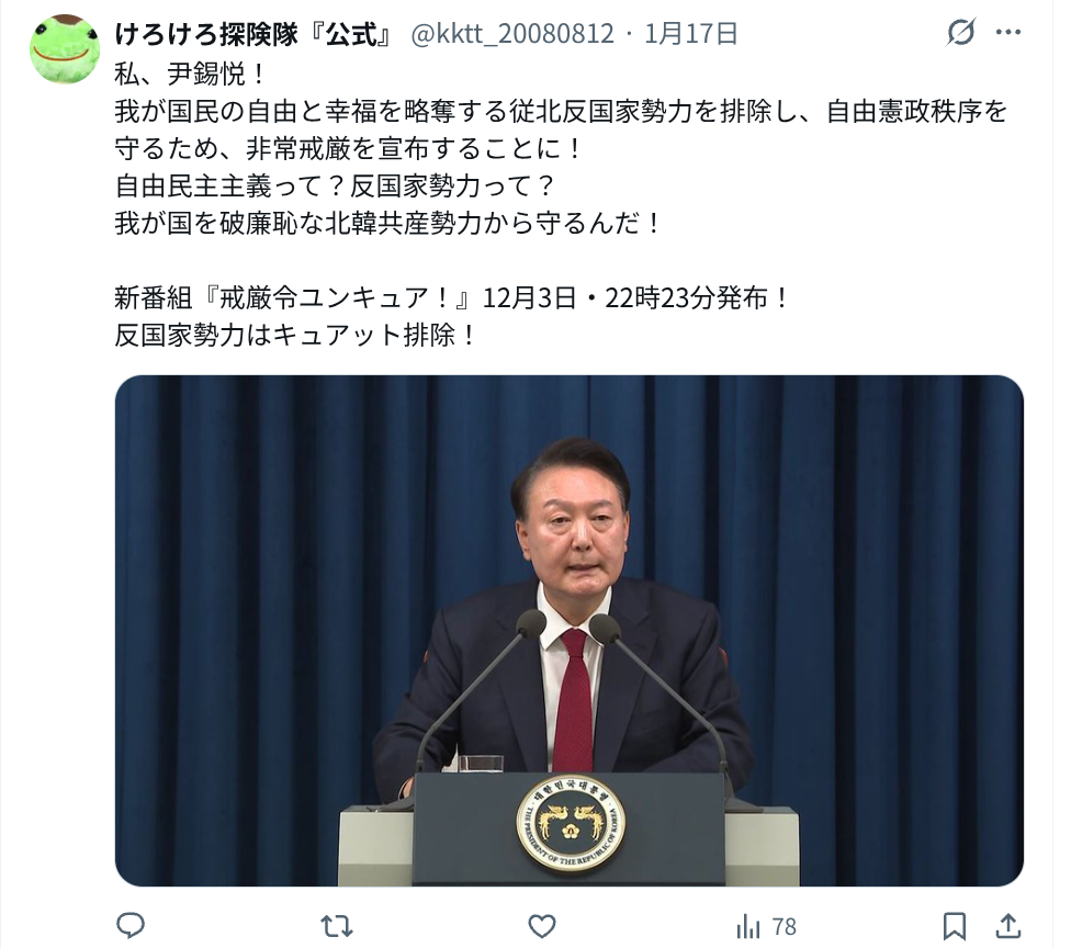| … | 79無念Nameとしあき26/01/27(火)17:58:25No.1383073449そうだねx3>>>出ましたパヨク特有韓国応援団 |