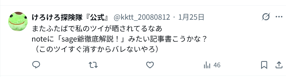 | … | 504無念Nameとしあき26/01/27(火)21:32:30No.1383132476そうだねx9>けろけろ探険隊(本人) |