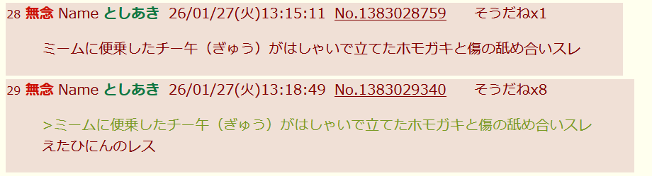 | … | 44無念Nameとしあき26/01/27(火)17:52:51No.1383072384そうだねx7いがみ合っていた荒らし寄りのとしあき達も |