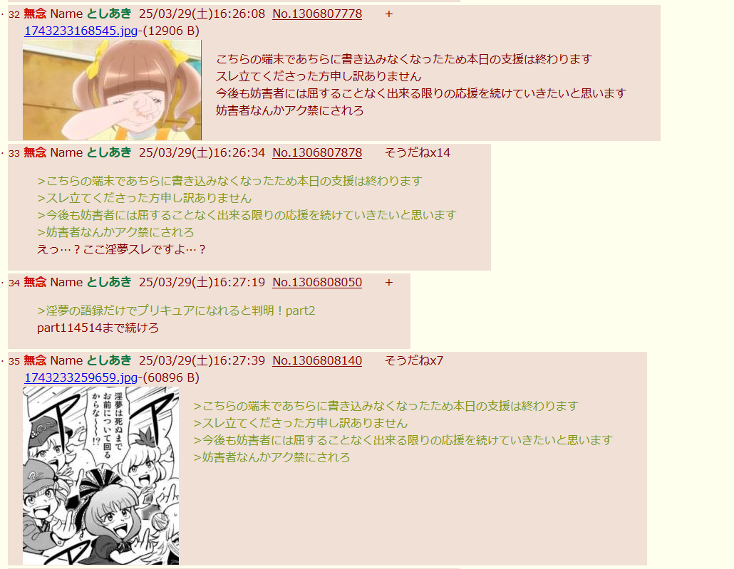 | … | 18無念Nameとしあき26/01/27(火)17:50:03No.1383071843そうだねx4>お前さ淫夢厨だけに嫌われてると勘違いしてるんだろうけどプリキュアファンもお前を迷惑だと思ってるんだからな |