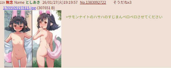 | … | 89無念Nameとしあき26/01/27(火)21:39:36No.1383134597そうだねx4 1769517576375.png-(1263381 B) >ブラマジガールのコスしたウサミンお願いします! |