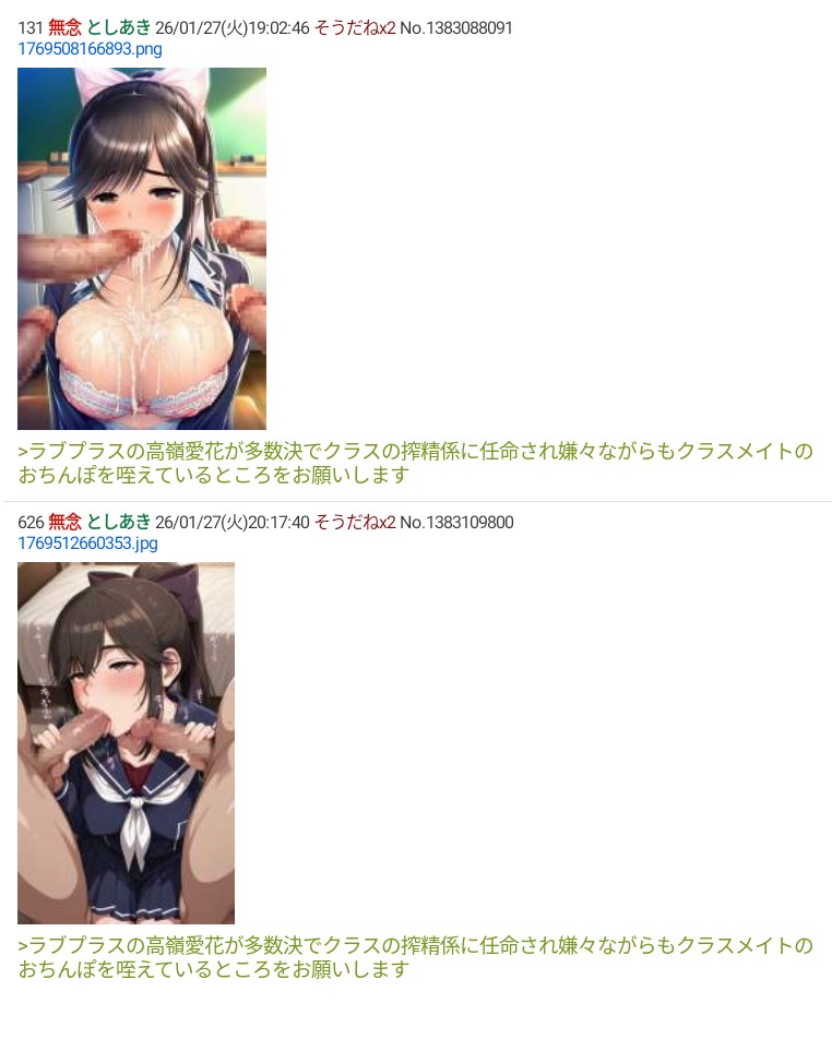 | … | 962無念Nameとしあき26/01/27(火)23:27:45No.1383163509そうだねx4>自分のリク通らないからって癇癪起こすのやめーや |